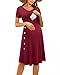 Casual nursing dress features short sleeve, decorative buttons, solid color breastfeeding dress, V-neck maternity dress