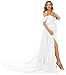 Maternity dress for photography; This maternity dress features dropped ruffle sleeve, off shoulder neckline, sweetheart top and a maxi train silhouette to creat a gorgeous and elegant look.