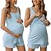【Suit for Every Stage】Tank/Short sleeve tops, shorts with pockets, high stretchy fabric, provide enough space for growing belly. Such comfortable maternity pajamas absolutely will be a nice gift for new mom, wife, daughter or friend.