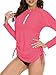 【Half-Zip Closure】Zipper with liner of long sleeve swimsuits top protects your neck to keep the zipper from rubbing against your skin. Open the zipper to expose your beautiful neck, and easy to take on and off.