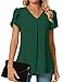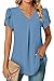 ❤【Chic Design】 Casual style T-shirts, loose fit blouse, v neck tops tee, pleated both front and back. The flutter short sleeves not only make you feel cool but also hide the upper arms in a flattering way and create a slimming look.