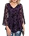 【Design Feature】 Flutter 3/4 Long Sleeves/ V Neck/ Loose Fit/ Floral Mesh Double Layer/ High Stretchy/ Flowy Tunic Tops/ Lightweight/ Chiffon Blouses For Women