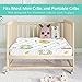 Design: Made of breathable fabric filled with eco-friendly foam for noise reduction and softness. The mini crib mattress Topper is printed with cartoon and multi-color patterns, which are loved by babies, and the surface is designed with non-slip to prevent slipping while standing.