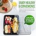 COMPLETE BUNDLE FOR STRESS-FREE MORNINGS! Packing lunch and snacks for children and adults is a breeze with Bits Kits 5-Piece bento set; includes one single compartment container, one 4-compartment container, and three condiment containers