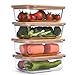 ✅ ALL-IN-ONE USE: Simply use our glass container for meal prep, our 4 pack of 35oz give you generous for storage space for all needs, straight from the food prep to the oven cook. Our borosilicate glass is oven safe up to extremely high temperature 600F degree, server the delicious meal for lunch or dinner after cooking then storage the leftover in the container with airtight Wood lids in the fridge. You can also use as a lunch box and to warm in microwave or oven for the next day.
