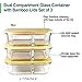 ✅DUAL-COMPARMTENT: Our 3 sets dual-compartment bento box are perfectly sized for any meals and prevent smells seeping between each compartment from the containers. Our 3 set glass containers, each one sizes 31OZ(7.7x5.7x2.4in), and each with their own bamboo lid. Bamboo lid is recommended to wash by hand not in dishwasher.