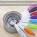 🌸 [SPECIAL DESIGN]: The bright, colorful BPA-free silicone handles add a trendy look to your kitchen. What’s more, the silicone provides a solid grip to help ensure the cups and spoons won't slip even with greasy hands. The cups and spoons each stacked in one bundle with a removable stainless ring which makes them easy to storage in the cabinet or hang on wall, and you can easily take apart to use them when you need.