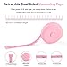 ✔NOTE: The pink tape measure is retractable. There is a retract button in the center, just press on the button when pulling the tape out or retracting the tape back into it, or there will be loud noise.