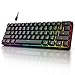 [61 Keys with Gorgeous Backlighting] The 60% gaming keyboard can save desk space. The detachable Type-C cable and small size make it easy to carry around for home/office use or business trips. It offers 26 backlighting modes with RGB effects, providing over 16 million color combinations to personalize your keyboard's appearance.