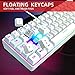 【Cool RGB Backlit Effect】The 60% rgb keyboard include 6 backlight effects and 8 backlight color switching. There are normal light/wave/horse riding/breathing mode for choice, and 5 levels of brightness and speed for control. The white keyboard is mixed various lights, which looks graceful and luxurious, especially the ice blue light.