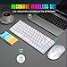 【Rechargeable & Long Battery Life】This rechargeable 60 wireless keyboard is equipped with 2000 mAh battery,and the mouse is equipped with a 500 mAh battery. It only takes 2 hours to charge the keyboard by 5V/1A , and it can be used continuously for more than 40 hours with light. Support energy-saving sleep mode.
