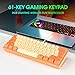 Smooth Gaming Experience:All standard 61 keys are no conflict.Full keys anti-ghosting bring you more smooth gaming experience.Ergonomic suspension double-color injection keycap, double kickstand feet can adjust the placement angle, so you can use it for a long time without feeling tired.