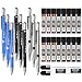 Come with 6 PCS black drafting pencils and 8 tubes of lead refill in 0.3mm 0.5 mm & 0.7mm & 0.9mm (HB) + 2.0 mm(4B, 2B, HB, 2H) carbon based , 2 pcs erasers, 9 pcs cap eraser refill, 2 lead sharpener, updated storage case packaging
