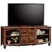 [MODERN TV STAND] A contemporary TV console with stylish metal hardware for a chic touch to your interiors. Crown molding details and paneled cabinet doors add decorative accents for a sophisticated piece that blends a rustic wood grain finish with modern styling.