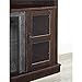 Espresso finish is accented by faux stone surrounding the fireplace insert and framed glass doors