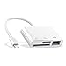 2 in 1 Double Card Slot: The sd card reader compatible with sd and micro sd memory card, support all iPhone with iOS 9.2 and up and iPads with iOS 8.0 or later,It's easily download photos or videos from SD cards directly to the iPhone or ipad, and share videos or photos with friends and relatives anytime and anywhere.
