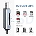 【Dual Card Simultaneous Access】This card reader supports simultaneous reading of dual cards, avoiding repeated card insertion and removal, speeding up file transfer and making data access more efficient. Compatible with SD / Micro SD / TF / SDHC / SDXC / Micro SDHC / Micro SDXC / MMC cards etc.