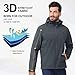 WATERPROOF & BREATHABLE - The Soft Shell Hooded Jacket outshell with Durable Water Repellent Finish to resist water, dirt and oil obviously, always keep you dry and clean. (Waterproof Index: 8000-10000mm, Permeability Index: 2000g/m^2/24Hr) 3D three-dimensional rim hood prevent the snow and wind into the garment, easy to hide and expand, it can be stored as a stand-up collar. AXILLARY VENTILATION SYSTEM with zipper to keep dry and comfortable through evaporation of moisture under your arm.