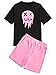Design: Short sleeve top and shorts set, cartoon graphic print, track shorts, pink color, drawstring waist short with pocket