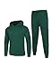 【Features-1】Mens 2 piece running sweatsuit: athletic pullover hoodie feature in plaid jacquard, hooded, adjustable drawstring, solid color, kangaroo pocket, raglan sleeve, elastic cuffs & hem.