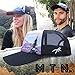 MOUNTAIN TRUCKER HAT- features a cool mountain print design. Snow capped mountains, trees, and a beautiful sunset. Unique printed design unlike any other out there!
