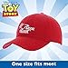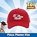 TOY STORY BASEBALL HAT: Red cotton adjustable Toy Story dad hat with the Pizza Planet logo embroidered on the front of the cap