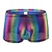 Rainbow Metallic Boxer Briefs for Men: Bronzing shorts looks very sexy and full of personality, suitable for all kinds of performances, releases your infinite charm. Super elastic soft comfort covered waistband can fit your body well, let you show the extraordinary talents on the stage. Immaculate support to where it counts, provides good support without being restrictive, adds high stretch for comfortable daily movement.