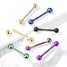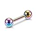 MEASUREMENTS: Gauge Size: 14G (1.6mm); Straight Bar Length: 19mm(3/4 inch); Ball Diameter: 5mm; Color: Silver-tone, Rose Gold, Black, Rainbow, Blue, Gold-tone.