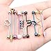 Includes 6PCS Industrial Barbells in 6 Different Colors(Silver,Black,Gold,Rainbow,Blue,Rose Gold)