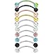 VALUE PACK: One Order Including 16 Pieces Curved Barbells Body Piercing Jewelry in 8 Styles(Opal Top/Round Ball/Spike/Glitter/Clear Bioflex Bar/4-Prong-Setting CZ/Rhinestone Inlaid in Ball).