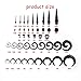 [Size Details]:18 Pieces Acrylic Tapers with Double O-Rings:14G(1.6mm) 12G(2mm) 10G(2.4mm) 8G(3.2mm) 6G(4mm) 4G(5mm) 2G(6mm) 0G(8mm) 00G(10mm) 18 Pieces Acrylic plugs with Double O-Rings:14G(1.6mm) 12G(2mm) 10G(2.4mm) 8G(3.2mm) 6G(4mm) 4G(5mm) 2G(6mm) 0G(8mm) 00G(10mm) 14 Pieces Silicone Tunnel: 8G(3.2mm) 6G(4mm) 4G(5mm) 2G(6mm) 0G(8mm) 00G(10mm) 1/2" (12mm).