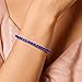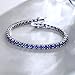 [September Birthstone Bracelet ]: Elegant created blue sapphire bracelet is known as the wisdom stone and will bring you peace and wellness of mind. This sparkling and colorful tennis-style bracelet is a great look any time.