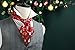 The tie appears to be solid red from a distance but a closer view shows quite the intricate floral design.