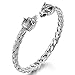 Mens Wolf Head Bracelet Steel Braided Cable Bangle Cuff Bracelet Silver Color Polished, Adjustable