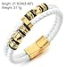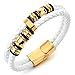 Mens Double-Row White Braided Leather Bracelet Bangle Wristband with Gold Stainless Steel Ornaments