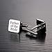 Stainless steel cuff links measuring 5/8 inch each are engraved with father of the bride and I loved you first.
