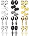◆COOL MENS EARRINGS SET ◆: Affordable earring set,you will get 9 pairs of different earrings.pure black stud earrings, simple round stud earrings,cross dangle hoop huggie earrings,triangle dangle earrings.meeting your multiple needs.unisex design,suitable for women and men of any ages.