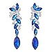Blue Art Deco Party Prom Rhinestone Marquise Cluster Chandelier Long Dangle Statement Earrings
