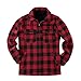 Features full zipper closure, 2 front button down chest pockets, 2 side slit pocket and drawstring tie cotton hood. Fully insulated and lined with polar sherpa. Choose from a variety of colors and prints red - black - blue - navy - brown plaid designs.