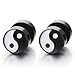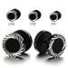 10MM Illusion Tunnel Plug Black Stainless Steel Mens Earrings Screw Back with Laser Patterns, 2 Pcs