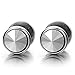 8mm Mens Stud Earrings Stainless Steel Illusion Tunnel Plug Screw Back with Metallic Spike Cz, 2pcs