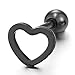 Black Flat Open Heart Stud Earrings of Stainless Steel for Women, Screw Back, 2Pcs