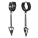 Black Steel Huggie Hinged Earrings with Long Chain Dangling Cone and Hollow Triangle Men Women, 2pcs