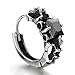 Pair Mens Vintage Huggie Hinged Hoop Earrings Stainless Steel with Black Square Cubic Zirconia