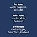 Rose petals, green apple, geranium, jasmine, and wisteria
