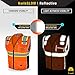 10 MULTI USE POCKETS | BREATHABLE MESH - Premium safety vest construction vest for men/chaleco seguridad that features 10 multi use deluxe pockets: (3) large expandable front pockets w/ strong & durable hook & loop closures, (1) 2-tier front phone/tool pocket, (4) pen/laser/pencil pockets, & (2) big hidden interior pockets. Mens hiviz vest ppe vest with pockets with black trim strips, (2) grommets, (2) mic/radio tabs & heavy duty zipper safety vest (zip up) closure w/ hiviz flourescent pull tab.
