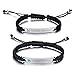 The bracelets is a matching set, and features a customizable stainless steel ID plate for you to custom,with handmade and hand braided, Some engraving ideas for you: message,words,name,roman numeral,special date,initial,Coordinates etc.
