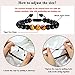 Adjustable range: 7-10.0 inch, lava stone bracelet is threaded with a strong elastic rope, durable and not easy to break, adjustable rope make it comfortable to wear, which are suitable for men and women; Note: when you adjust the length, please press the black knitting node,and then pull the rope, you can refer to the steps in the picture