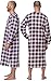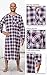 Modest Long mens kaftan robe features; Plaid patterns with piping, Long sleeve V neck baseball collar sleep shirt top with 3 button-down closure, 1 chest slip pocket, length approx. 46" Shoulder to hem.