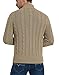 Feature: mens full-zip cardigan sweater, stand collar, long sleeve, twisted cable pattern, retro style, zip up, solid color, ribbed at cuffs and hem, 2 side hand pockets